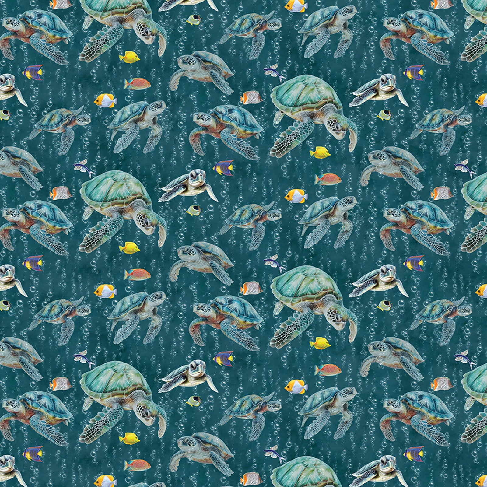 BENARTEX - Under the Sea by Skyline Studio - Sea Turtle Swim - Dark Teal/Multi