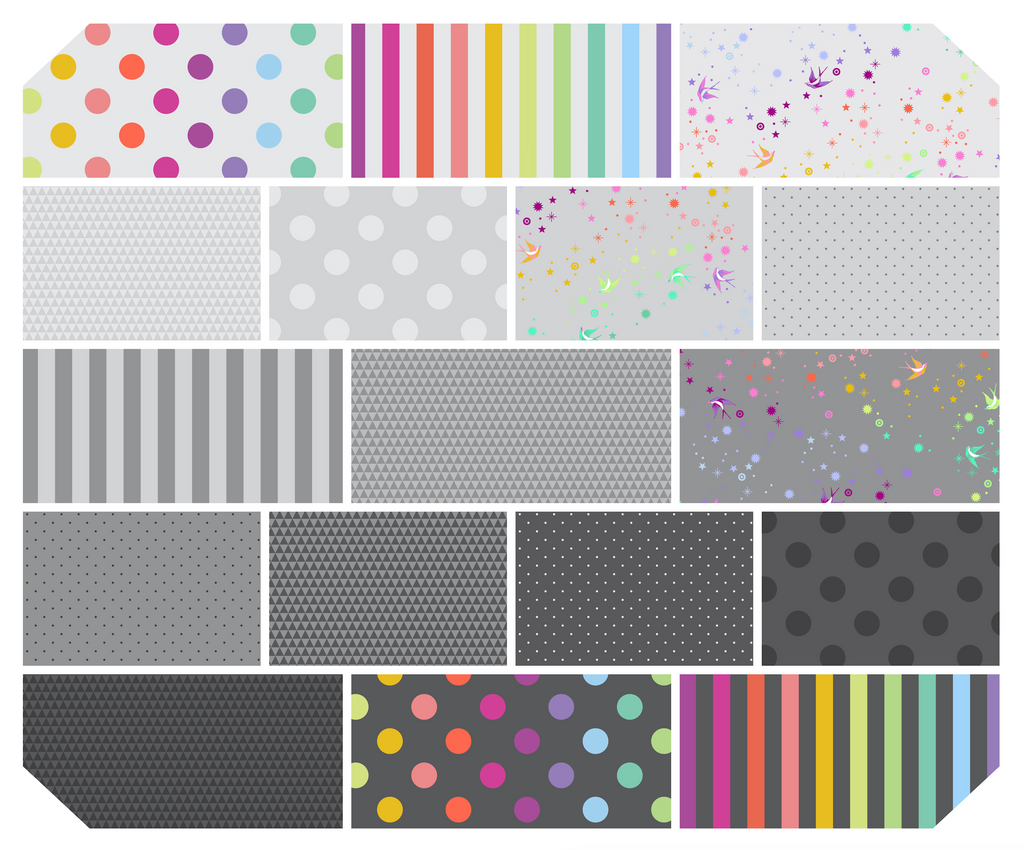 Free Spirit - True Colors Graywork 2.5" Mini Charm Pack by Tula Pink.