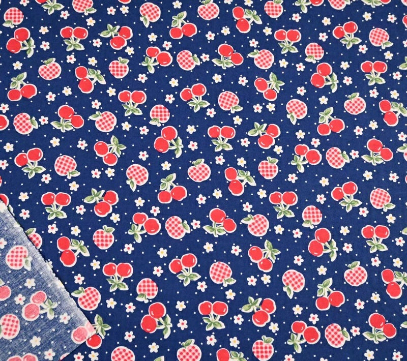 Handworks - Happy message 30's - Rose Cherries with Gingham Accent - Navy
