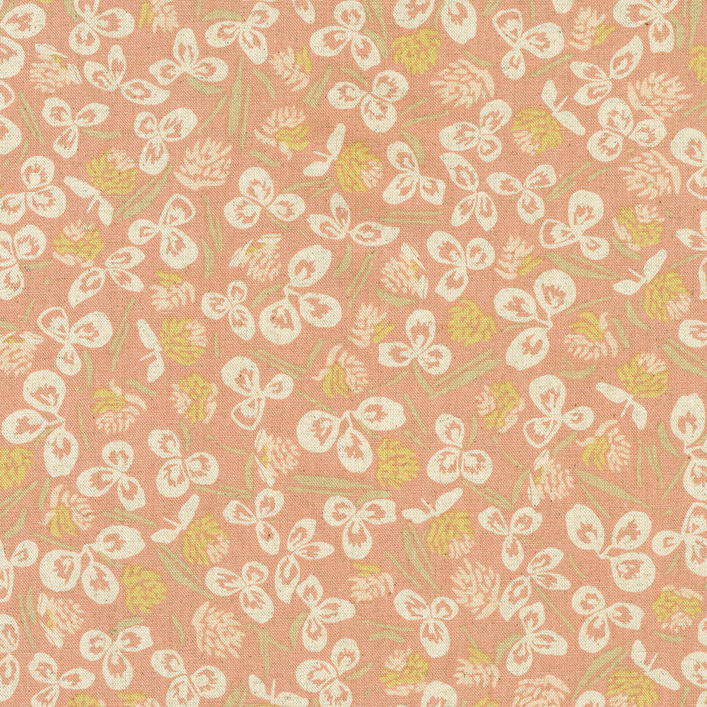 KAUFMAN - Orchard Run by Anna Graham - Cotton Flax Canvas - Clovers - Blush