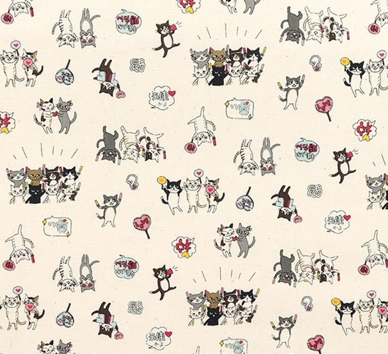 Kokka - Kawaii Cats Cheering - Cream is backordered and will ship as soon as it is back in stock.
