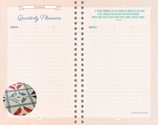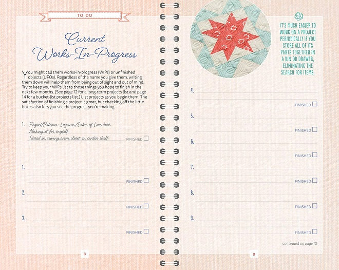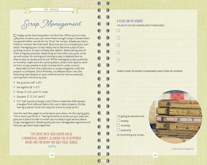 Set goals, know what you have on hand, track what you need, and keep all your essential notes in one place. At your fingertips is the ultimate organizer from social-media influencer, designer, and quilter Sherri McConnell of AQuiltingLife.com. In it, you'll find tips, techniques, and proven methods for getting your sewing space and quilting life in order. Small enough to take along and large enough to include your most important tips, it's the perfect tool for the job. Grab you planner and let's get organized! 128 pages. Spiral bound.