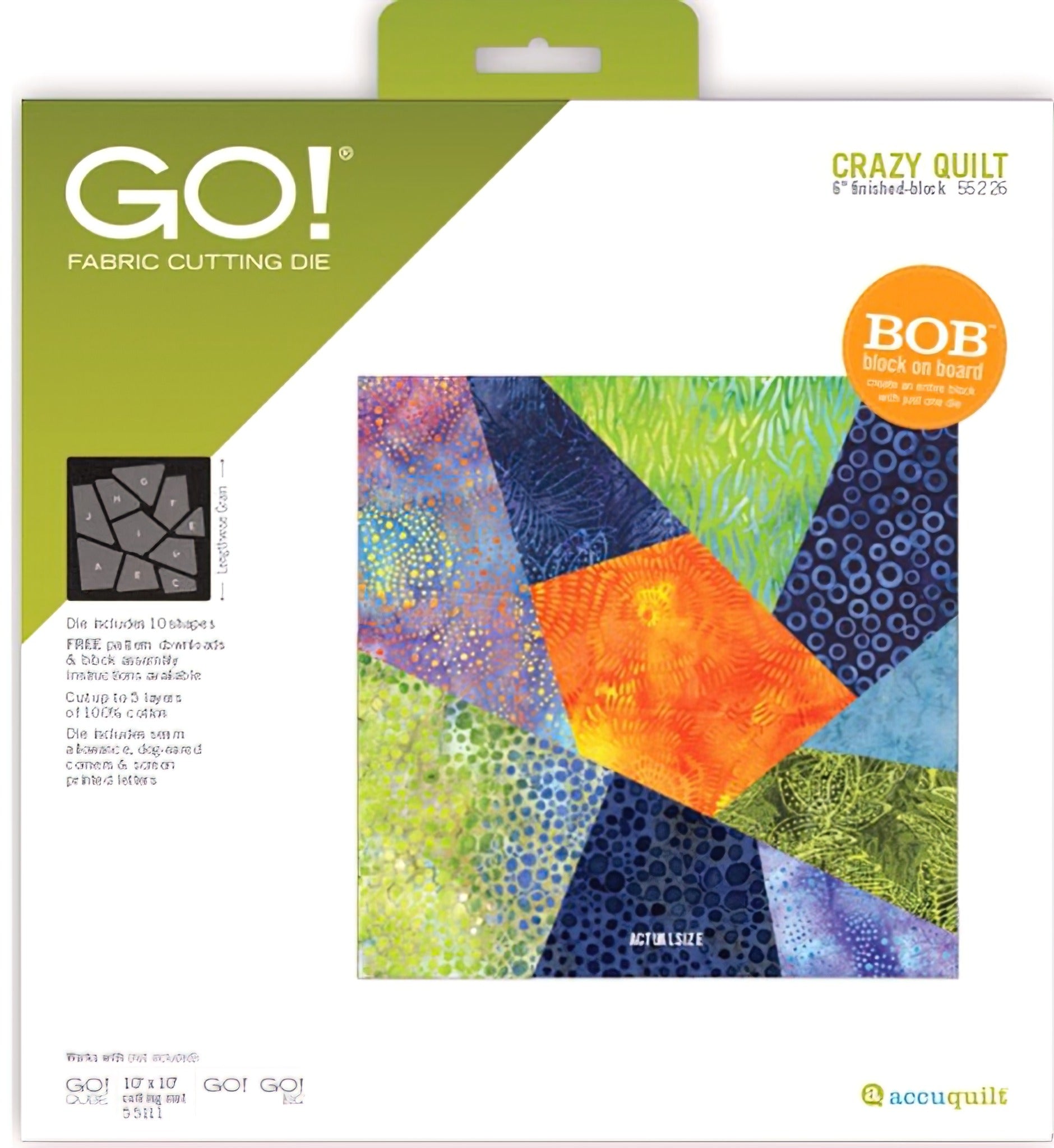 Quilters have been asking and we have answered! The GO! Crazy Quilt die creates a 6” block and fits a GO!, GO! Big and Studio fabric cutter with adapter. This die cuts up to 5 layers of fabric in one pass, so with 10 different fabrics and in two passes, you can create 10 scrappy blocks. Bust your stash and create striking quilts with just one die!