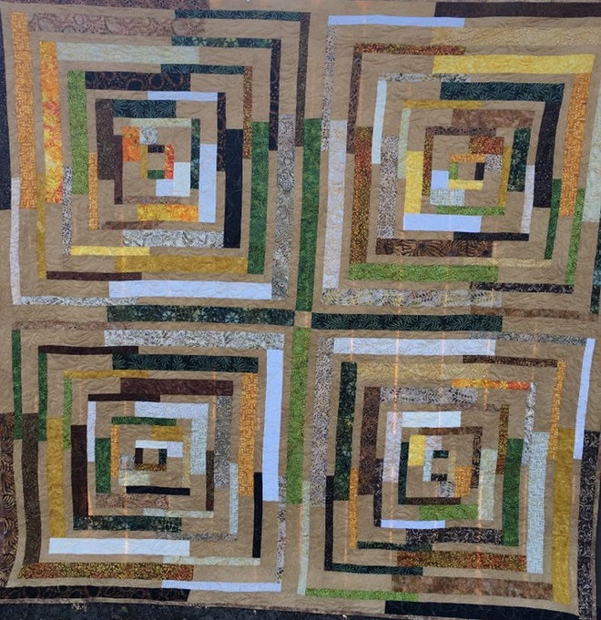 The grace and mystery of Arizona's gorgeous slot canyons inspired this dramatic quilt. Choose precut strips or cut yardage with a contrasting background for unique log cabin-style blocks perfect for any quilter with little experience.