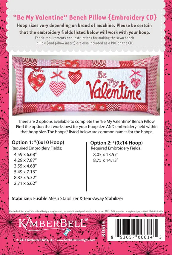 Be My Valentine Bench Pillow Pattern by KimberBell Designs