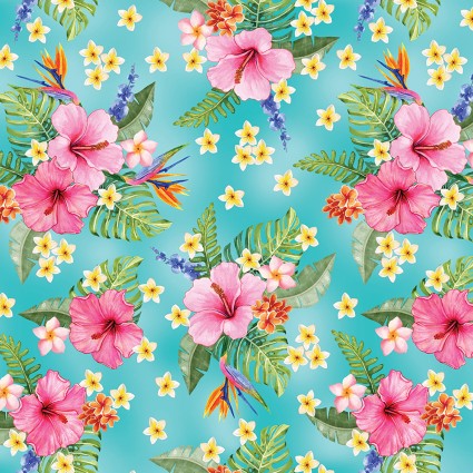 BENARTEX - Paradise Awaits by Nicole Decamp - Hibiscus Paradise - Teal