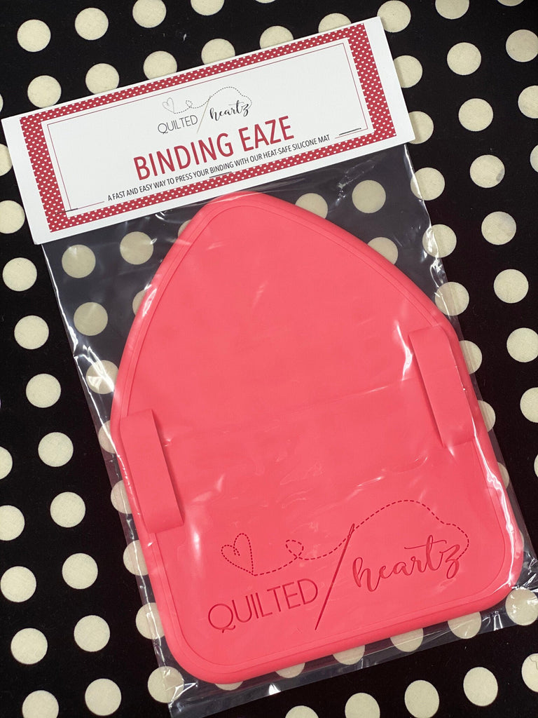 The most amazing tool to press your binding or bias tape you will ever use! Presses a folded piece of fabric with a super sharp crease easily and quickly. Binding Eaze is 7.5″ wide and 10″ long in the shape of an iron. The Loops that guide the fabric can be used up to 2″ width of folded fabric. May be used for an iron rest as it withstands heat up to 450 degrees for several hours, . Watch the tutorial of how it works.