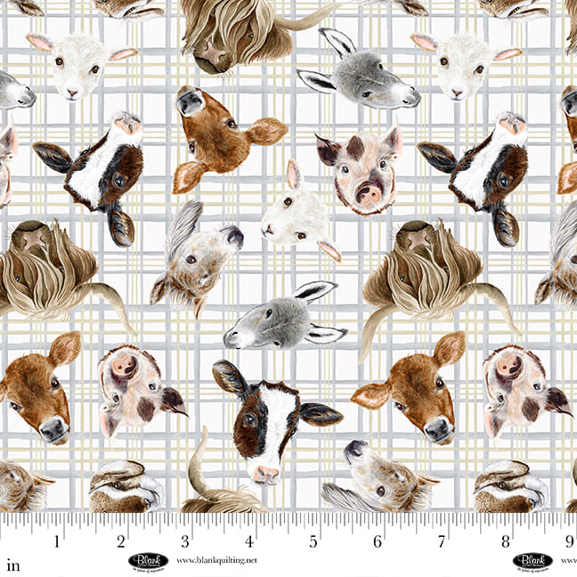 BLANK QUILTING - Little Seedlings Farm by Moque Lee Studio - Plaid with Animal - White