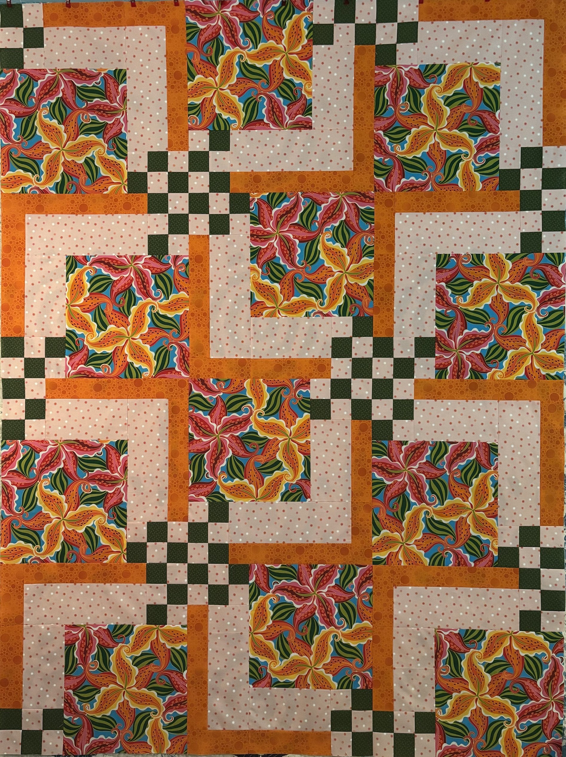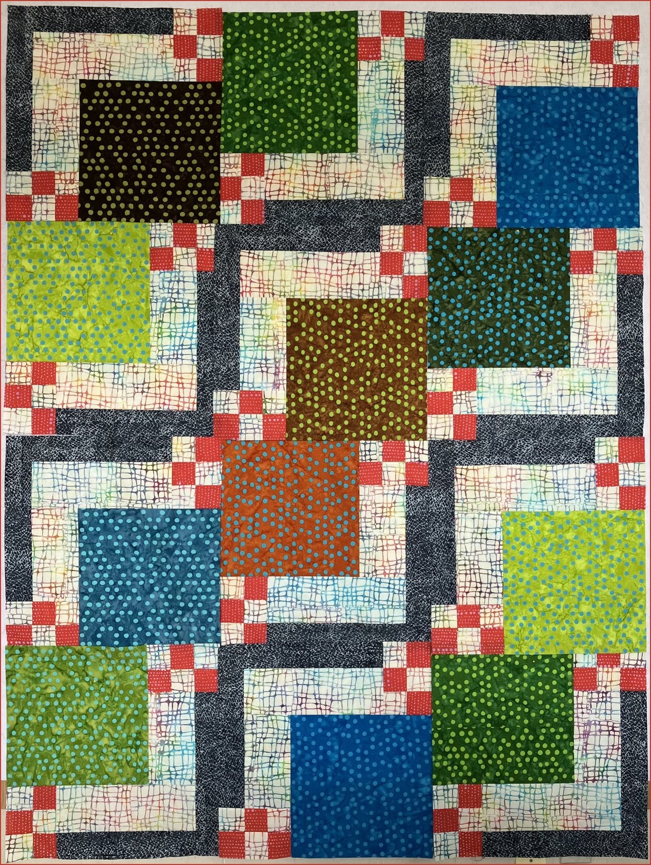 13 ½" block: Crib 27" x 41 ½", Lap 40 ½" x 54", Large Lap 54" x 67 ½".