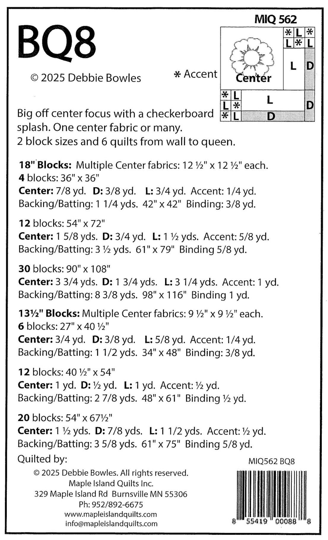 BQ8 Quilt Pattern by Debbie Bowles
