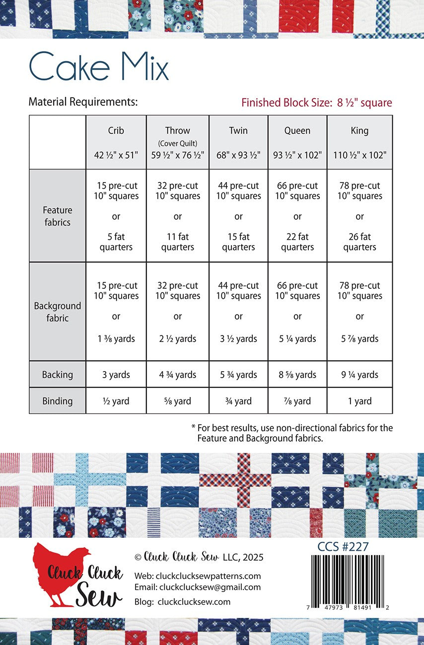 Modern and versatile, Cake Mix features a plaid look with simple blocks you can rotate to customize your design. Made with 10" squares or fat quarters, it includes five size options. Beginner friendly.
