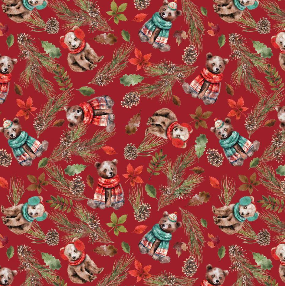 CAMELOT FABRICS - Merry Beary - Cozy Cubs - Red
