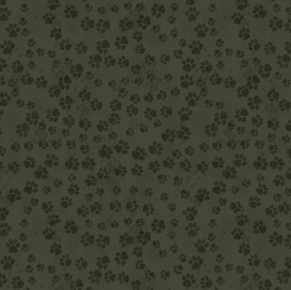 CAMELOT FABRICS - Merry Beary - Paw Print Trails - Dark Green