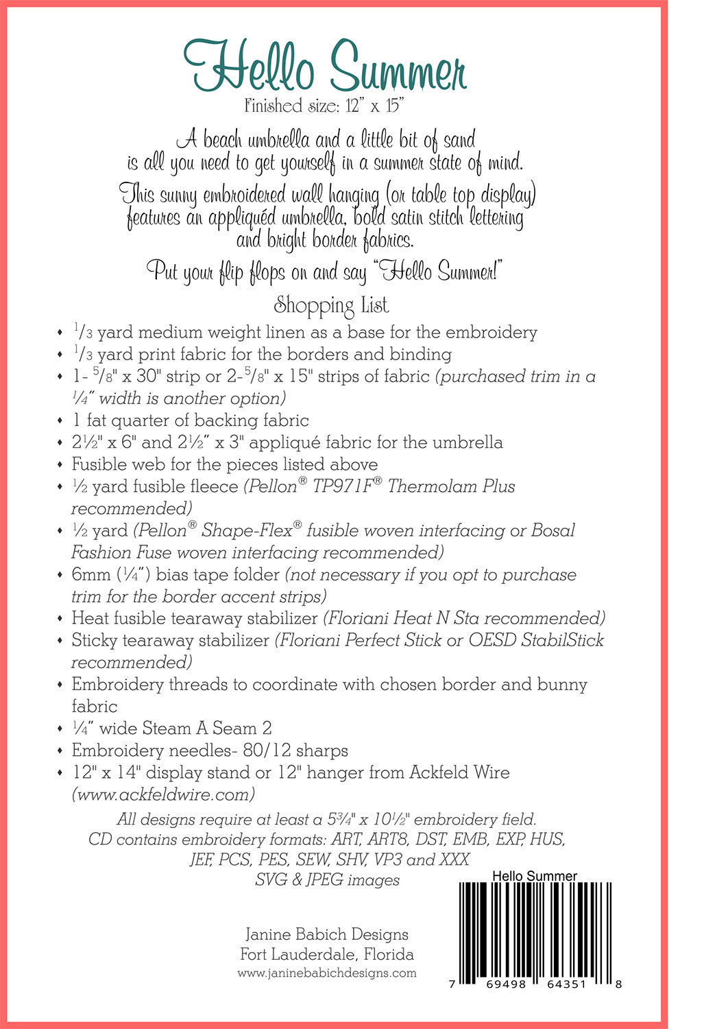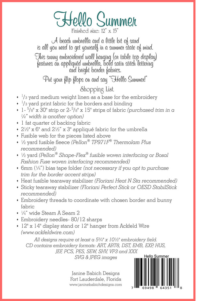 CD - Hello Summer Table Top Display Embroidery by Janine Babich