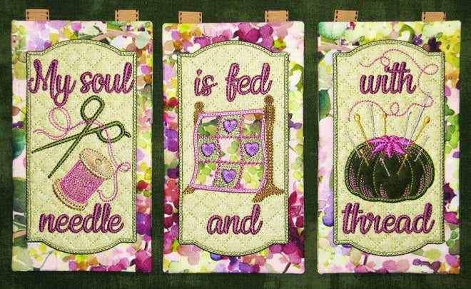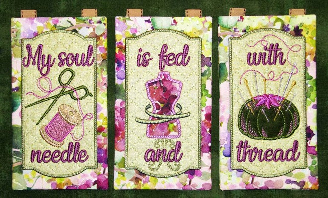 Sewing is such a rewarding endeavor; whether your interests lie in the construction of garments, the piecing of quilts, decorating your home or as a business enterprise. Craft a 'made in the hoop' expression of your love of sewing with this fun design that contains four panels; spool & thread, dress form, quilt & pincushion. Finished size: 16" x 11" when displayed in the Trip Tic stand, requires a 5.75" x 8" hoop. Includes embroidery formats: ART9, DST, EMB, EXP, HUS, JEF, PES, SEW, SHV, VIP, VP3 & XXX. JPEG / SVG images included.