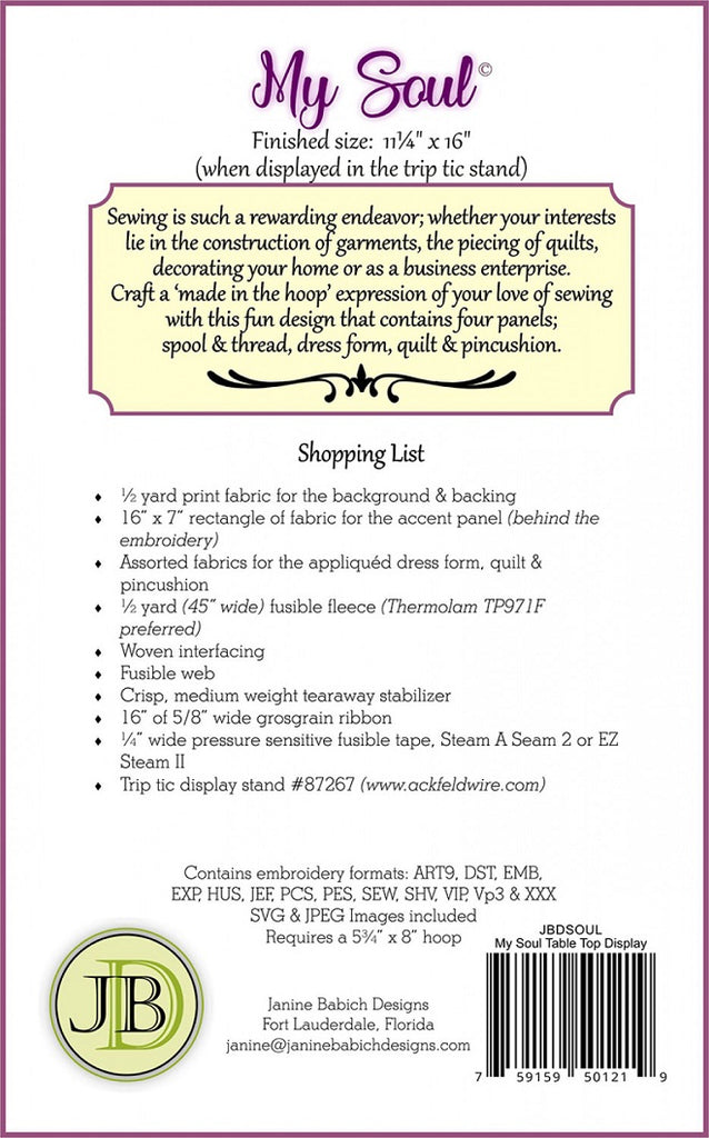 CD - My Soul Table Top Display Machine Embroidery by Janine Babich Design