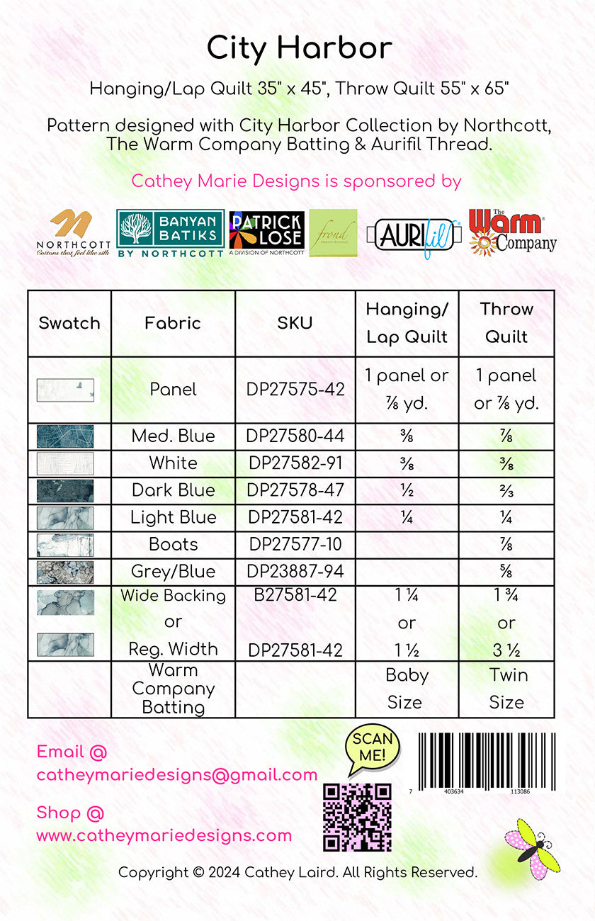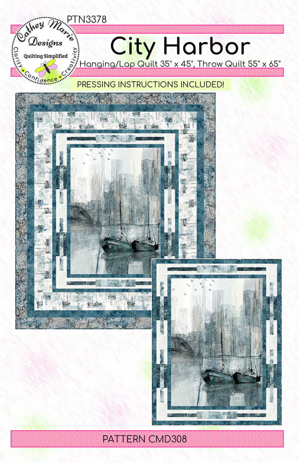Hanging/Lap Quilt 35 inch x 45 inch, Throw Quilt 55 inch x 65 inch Pattern designed with City Harbor Collection by Northcott, The Warm Company Batting & Aurifil Thread. Cathey Marie Designs' products are created with you in mind. No More Wasted Money on patterns and tools with instructions that are too confusing to understand!