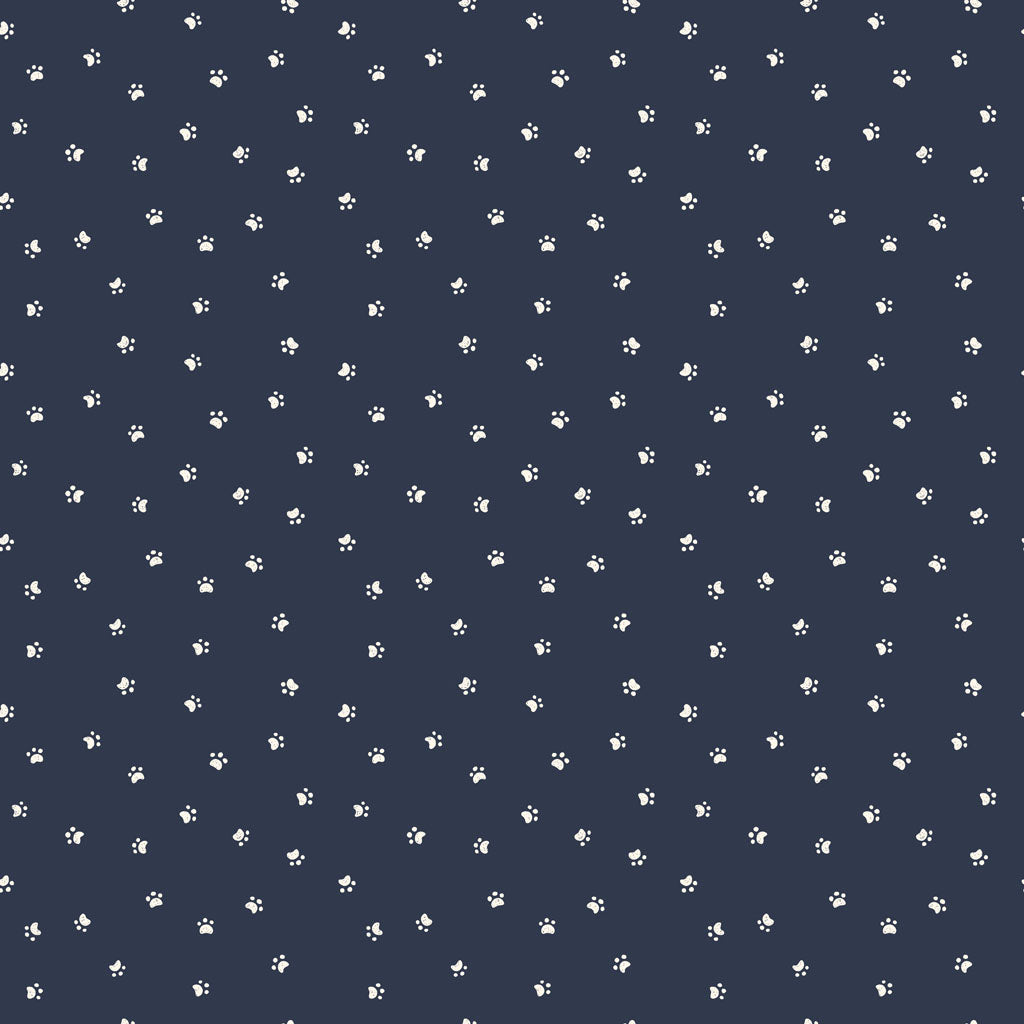 CLOTHWORKS - Kitten Fun by Julia Khimich - Paw Prints - Navy Blue