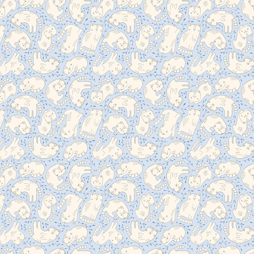CLOTHWORKS - Kitten Fun by Julia Khimich - Tossed Kittens - Light Denim