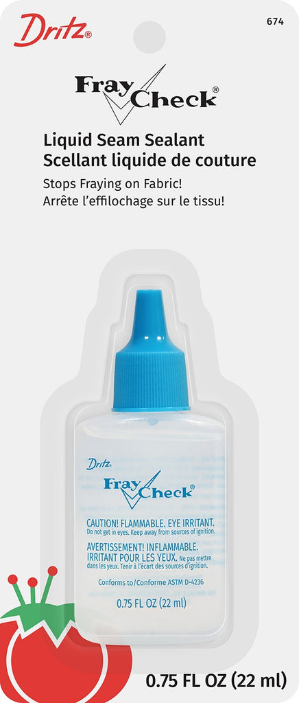 DRITZ - For neat, clean ends, choose the Dritz Fray Check Liquid. Colorless, this liquid-plastic solution stays invisible to give garments clean, perfect edges. Durable and long-lasting, this anti-fraying liquid withstands machine washing and dry cleaning. Apply this fray check in minute quantity by gently squeezing the bottle and allow it to dry for 15-30 minutes.