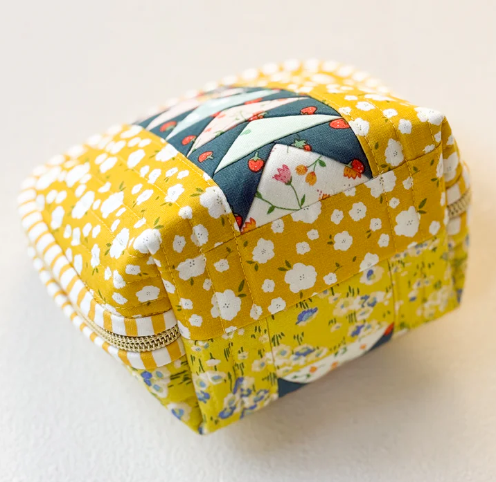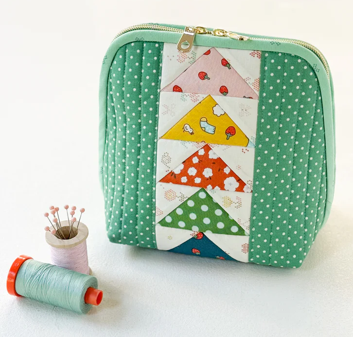 Make three stylish zipper pouches featuring the classic flying geese design! Perfect for storing sewing notions, makeup, or everyday essentials. With three different sizes, these pouches are as practical as they are pretty. A great scrap-friendly project to showcase your favorite fabrics! A full step-by-step video tutorial is included. Beautifully printed in a sturdy 8.5’’ x 11’’ hardcover format.