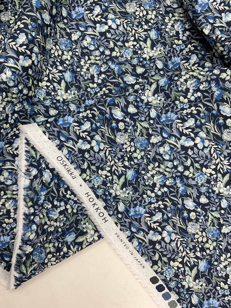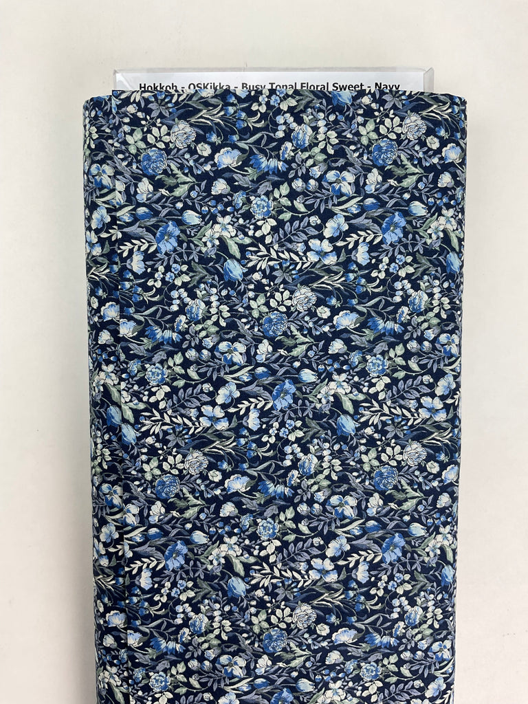 Hokkoh - OSKikka - LAWN - Busy Tonal Floral Sweet - Navy is backordered and will ship as soon as it is back in stock.