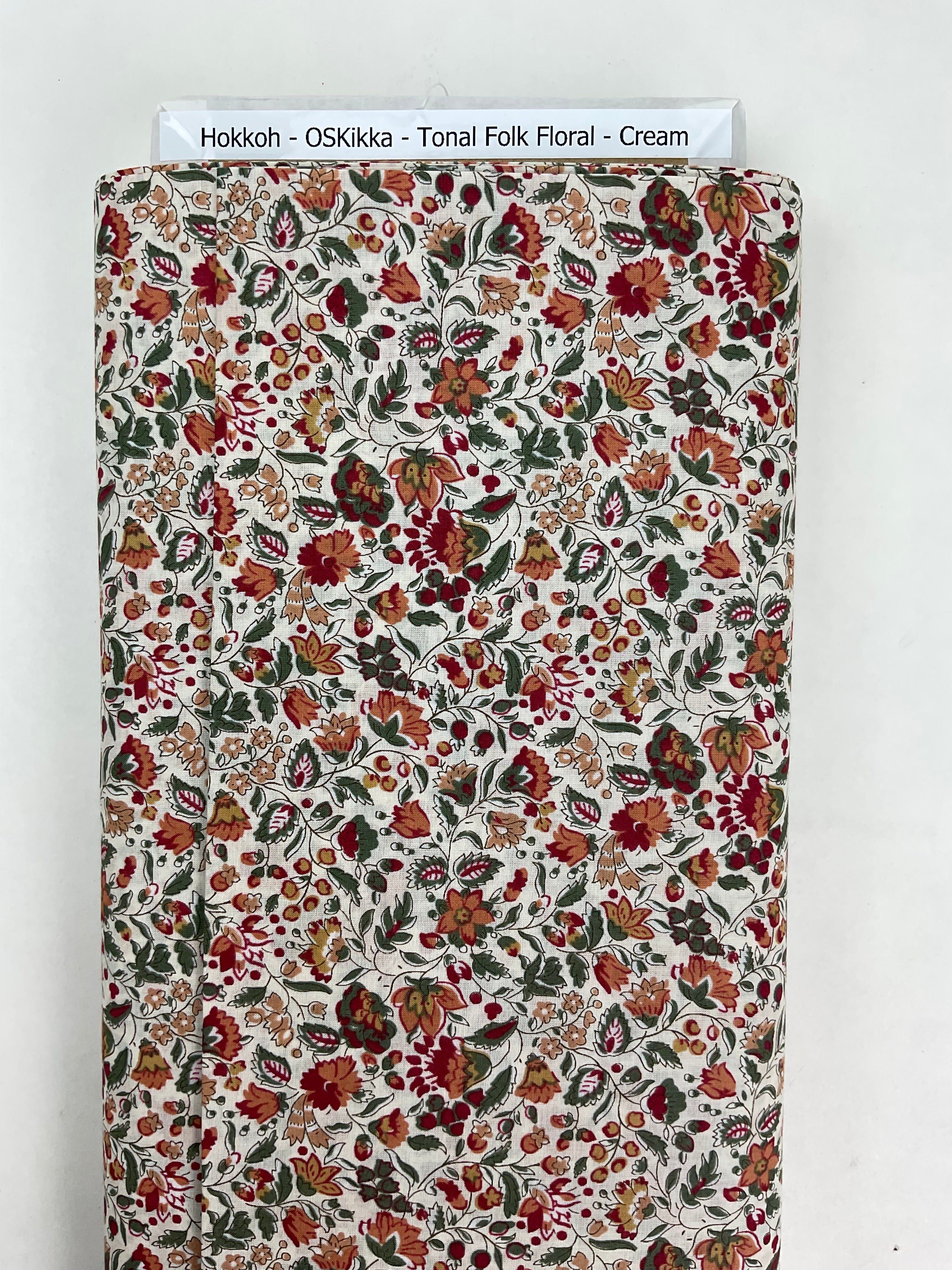 Hokkoh - OSKikka - LAWN - Tonal Folk Floral - Cream is backordered and will ship as soon as it is back in stock.