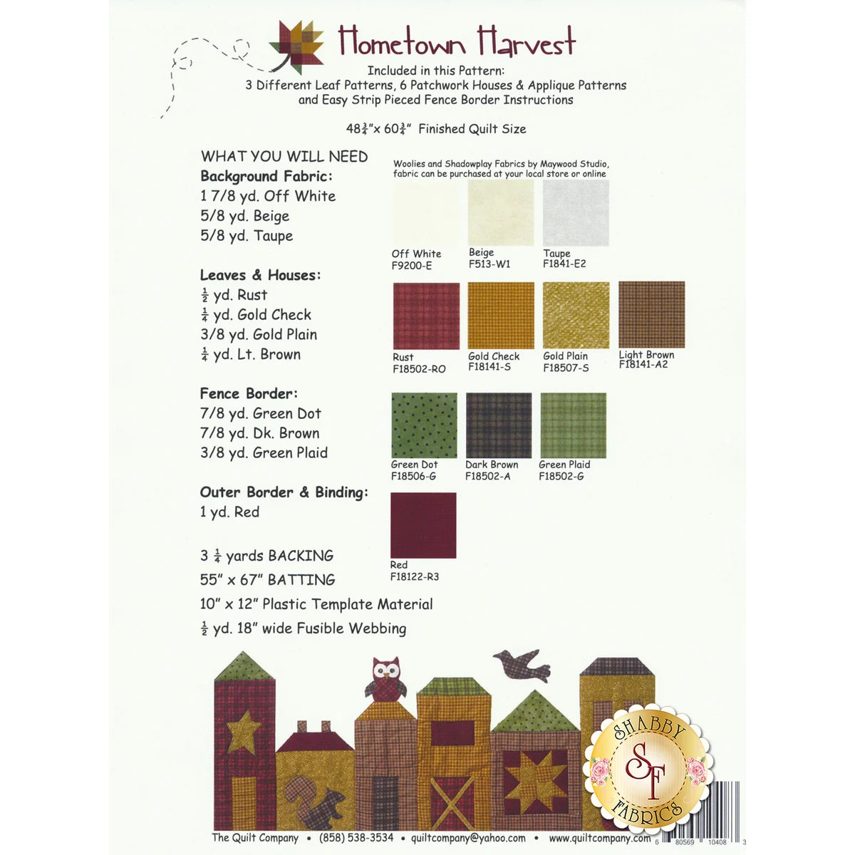 Get an early start on Autumn with this whimsical quilt that showcases the BEST of Fall! Hometown Harvest has 6 easy pieced Houses each decorated with a Pumpkin, Owl, Squirrel, Stars & the Harvest Moon! There are 3 different size Leaves and are easily pieced. But the Fence Border….it’s strip pieced! So EASY and creates a great finish to this warm and cozy quilt. Finished Quilt is 61" x 49".