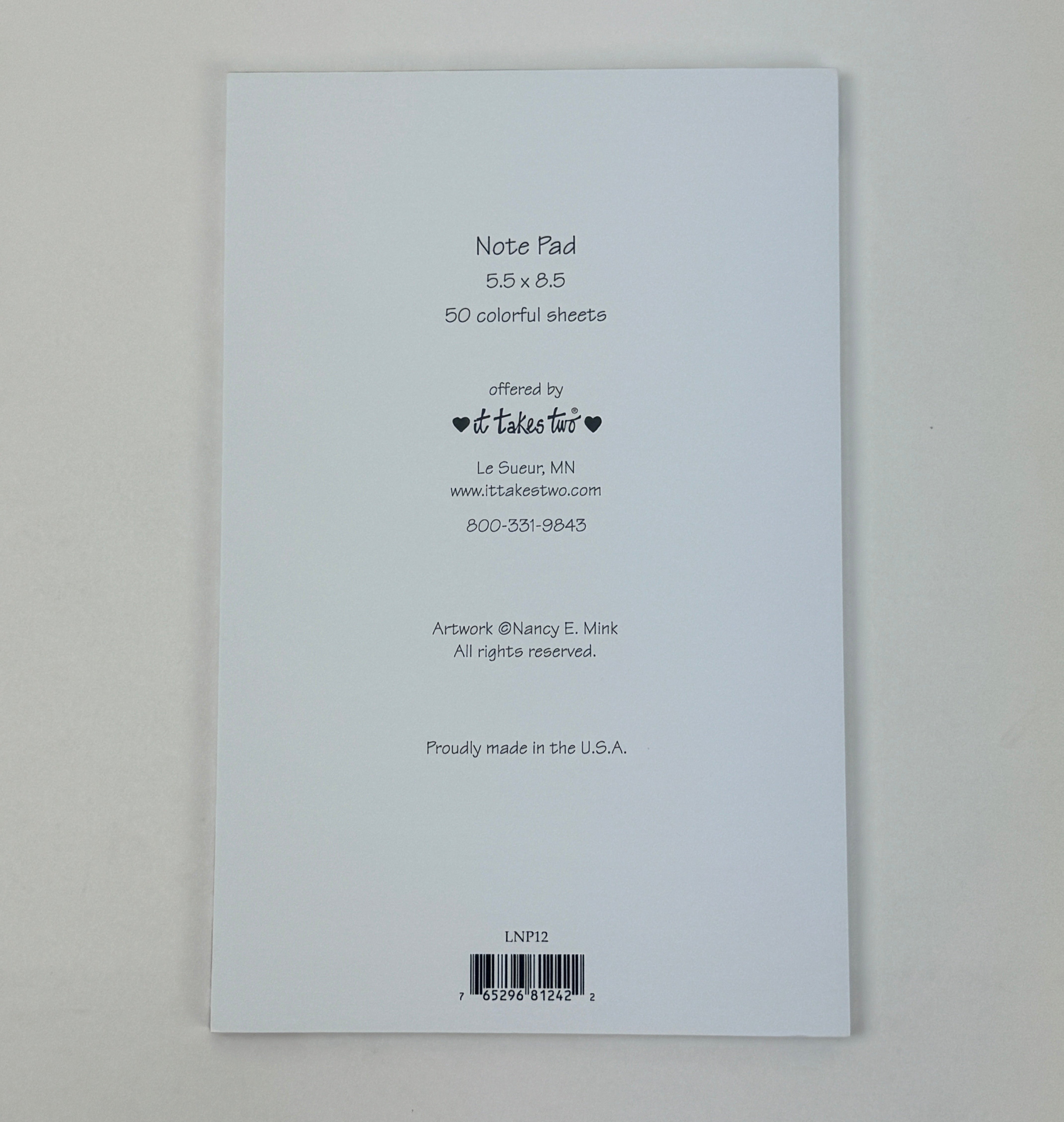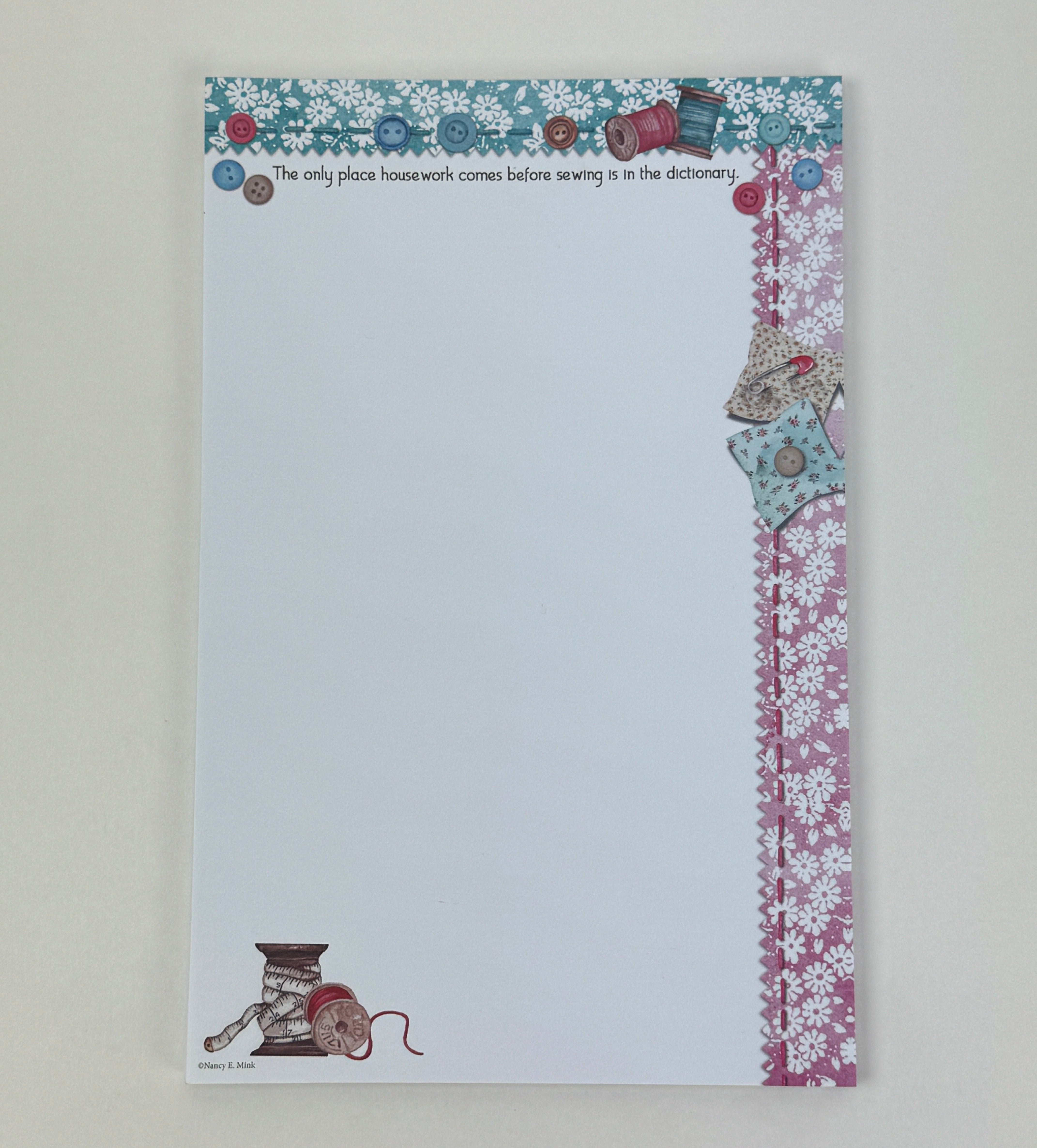 One 5.5in x 8.5in sewing note pad with 50 sheets.