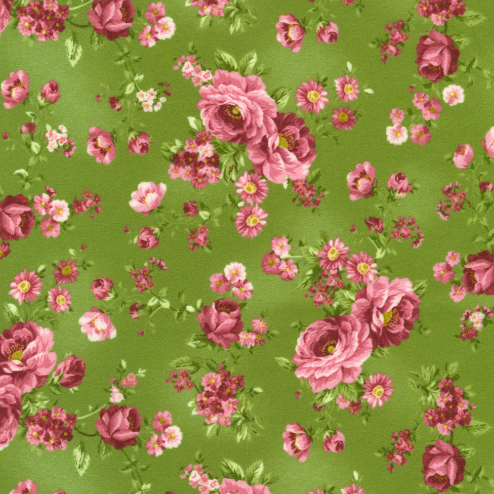 KAUFMAN - Bouquet of Roses Flannel - Small Pink Rose - Meadow
