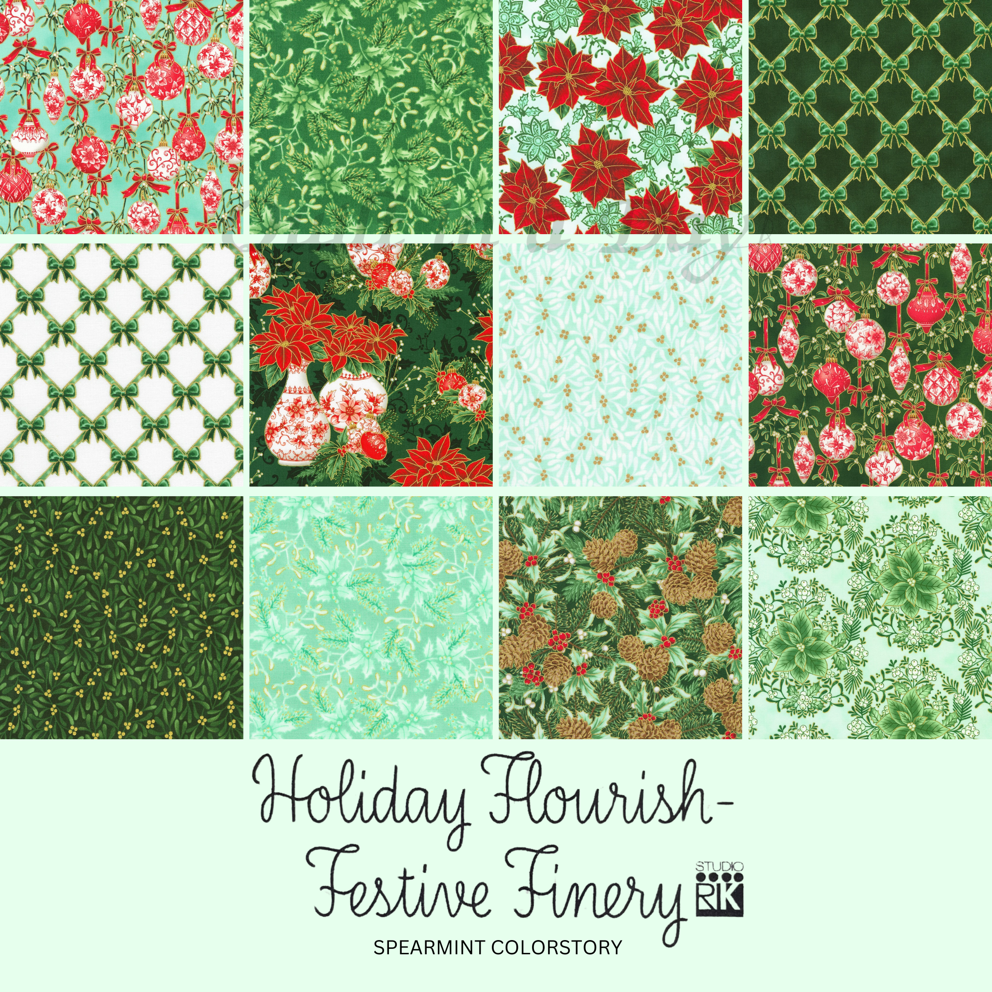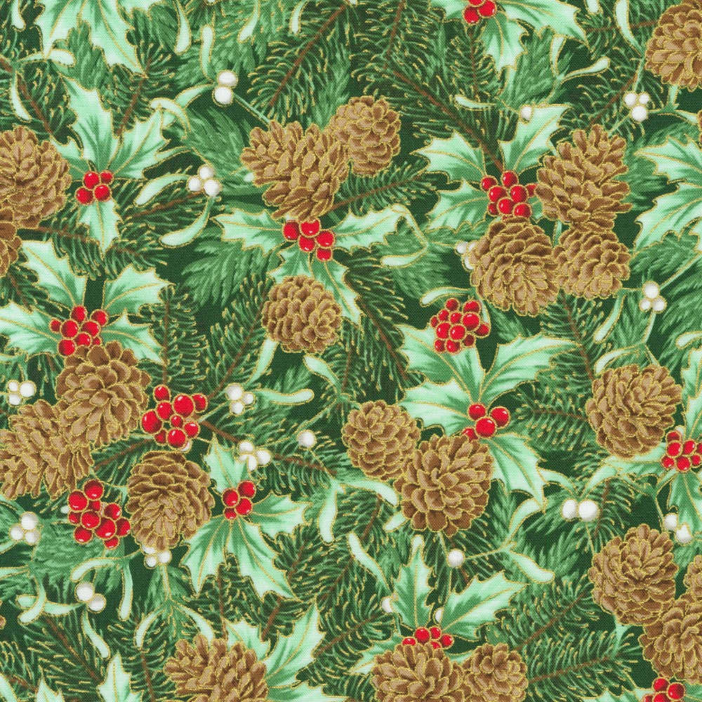 KAUFMAN - Holiday Flourish - Festive Finery - Pinecones - Fresh Sage