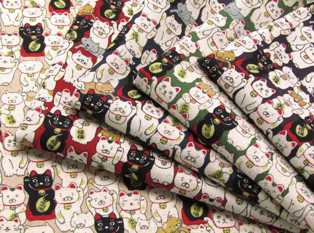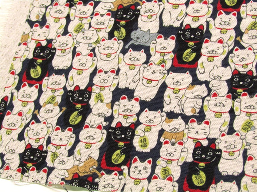 Kobayashi - Maneki-Neko Lucky Cat - Cotton 85% Linen 15% - Navy