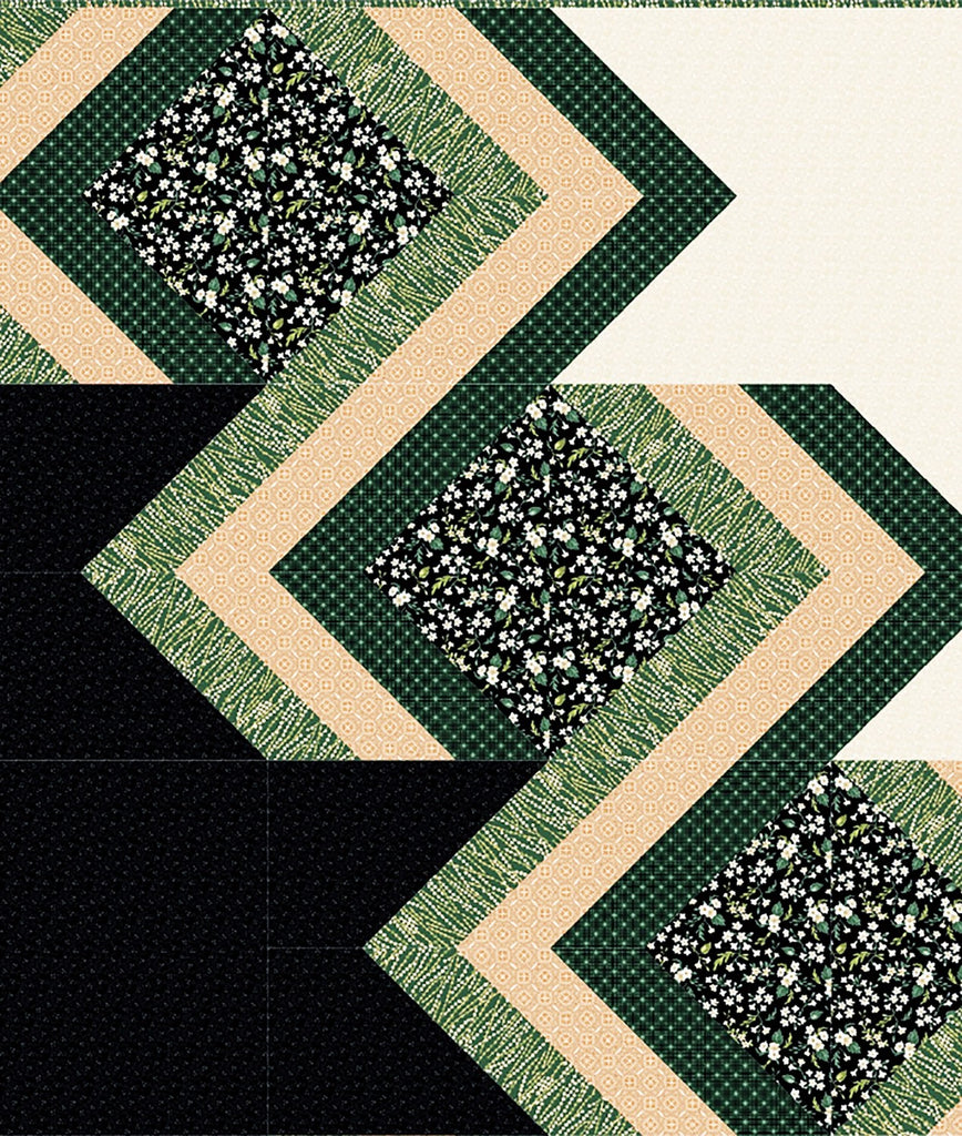 Strip piecing makes this bold, modern asymmetric throw quilt quick to piece. Choose prints or solids in multiple values of one color or be bold and use multiple colors. A coloring diagram is included to help you choose. Pattern includes tips and guidance on sewing with bias edges. Quilt measures approximately 59 in. x 72 in. #CQ9290