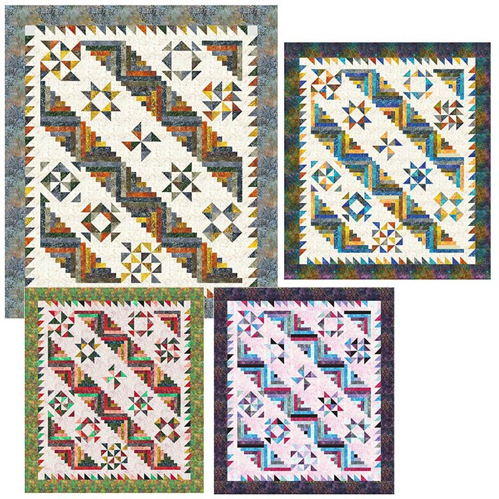 Nothing beats the striking elegance of the simple Log Cabin block and some basic half square triangle Sampler Blocks. Create this project using your stash or favorite Fat Quarter Bundle. Quilt finishes at 54” x 62”.