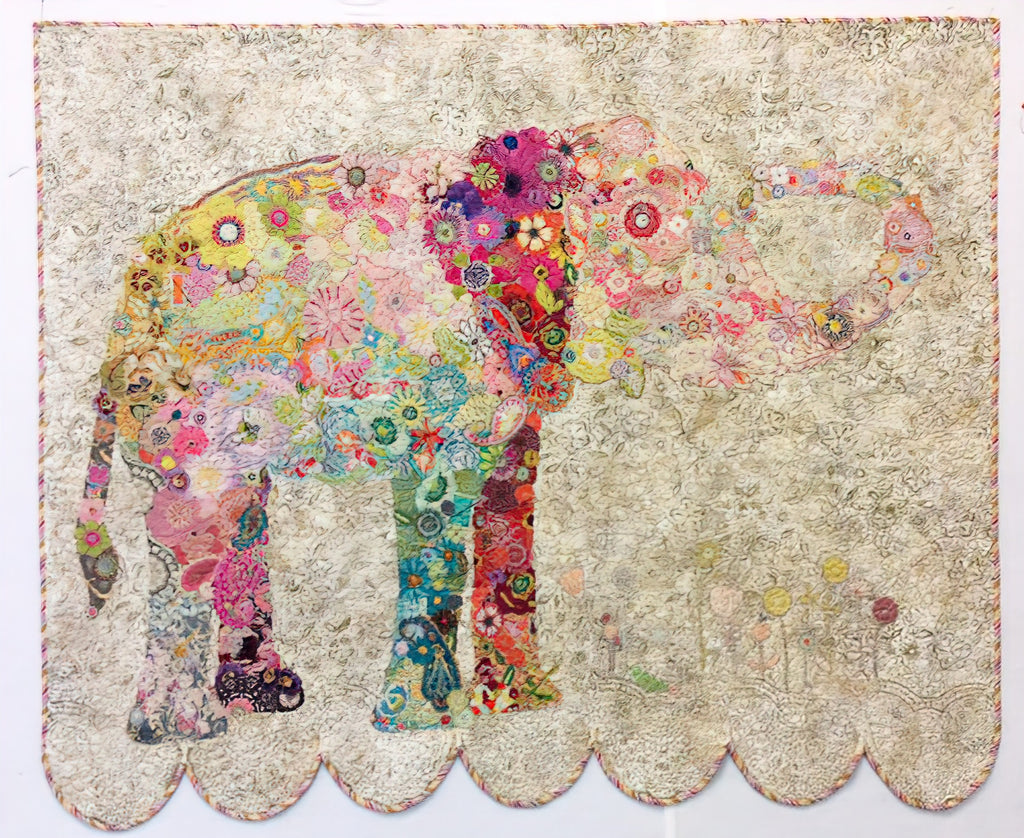 Laura Heine's Lulu, the Elephant collage pattern. Full size pattern and complete instructions included. Finished size: 50" x 42".