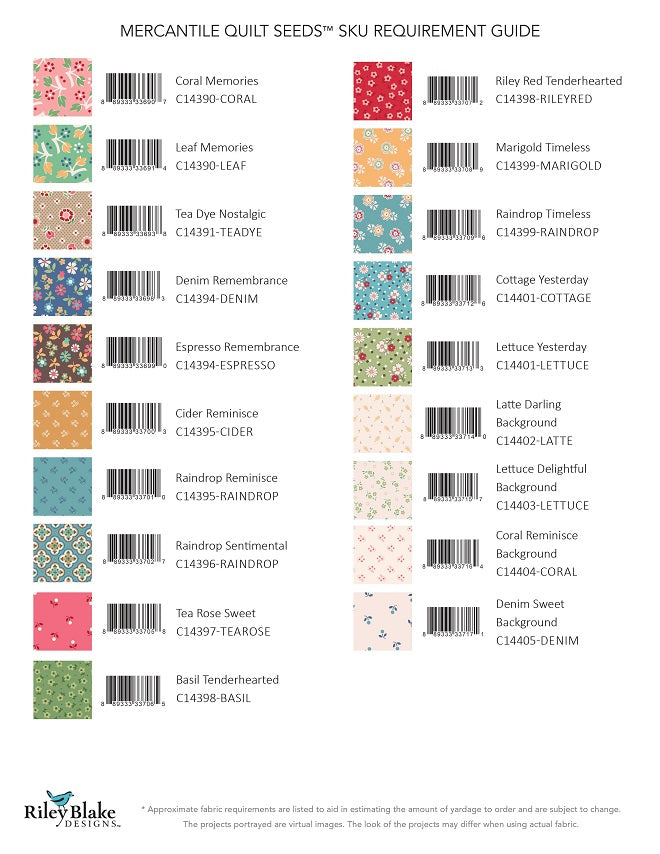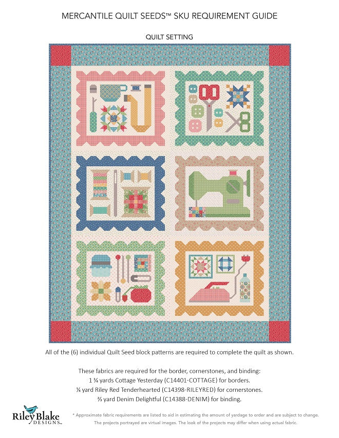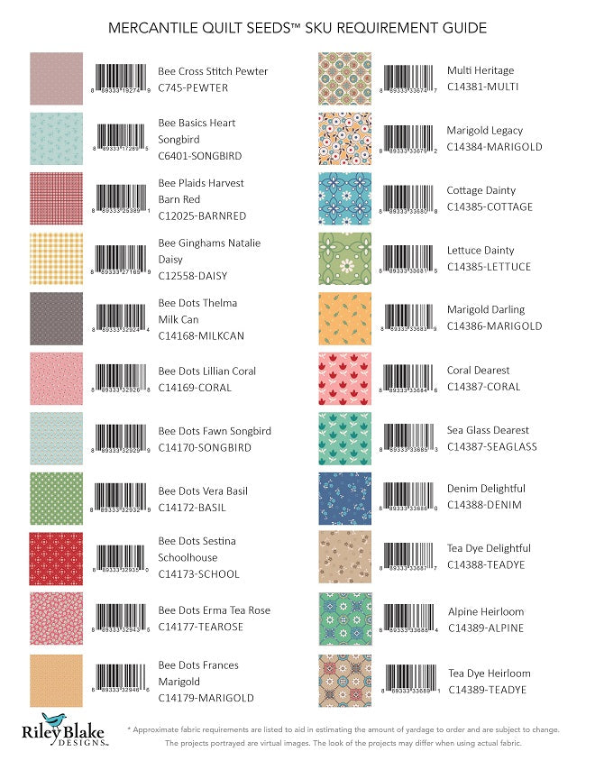 The Mercantile Quilt Seeds Patterns by Lori Holt of Bee in my Bonnet is a pattern series for 6 different sewing-themed quilt blocks. Each seed packet has instructions to make 1 block – all you have to do is add fabric. A paper pattern is included in each packet. No templates are required. Each block finishes at 29" x 25" and uses traditional piecing techniques. Collect all 6 of these beautiful seed packets in their keepsake packaging. This would make a great kit or block of the month. Lori will be doing a tutorial on the Mercantile Quilt Seeds on her YouTube channel. Seed packet size is approximately 6.5" x 9.5".
