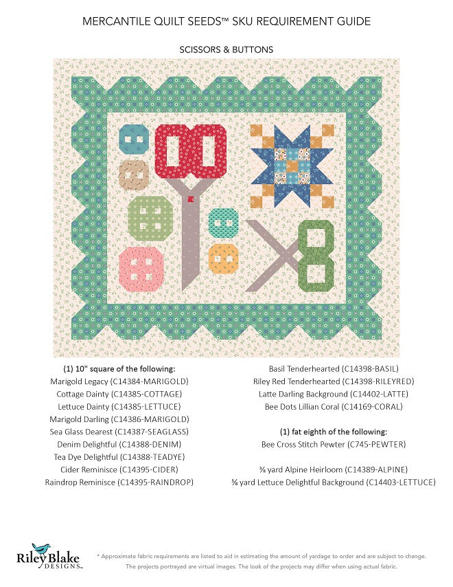 Mercantile Quilt Seeds - Scissors & Buttons Pattern by Lori Holt
