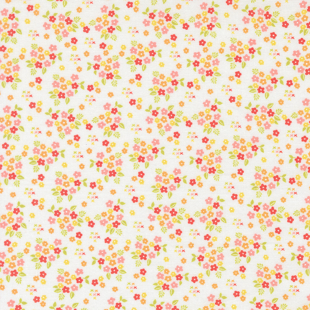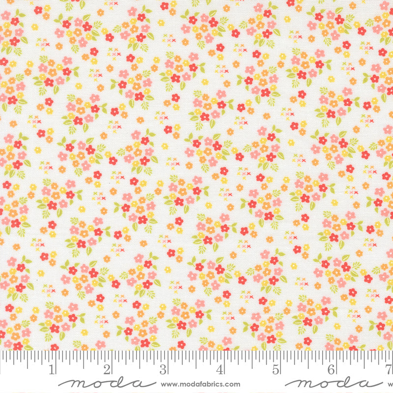 Posie Small Floral. 100% Cotton, 44"-45" wide. Designed by Sherri & Chelsi for Moda's Delightfully Yours collection. Made in Korea.