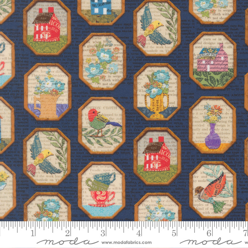 MODA - Paper Hamlet by Cathe Holden - Frames Novelty Birds Newspaper Houses - Midnight