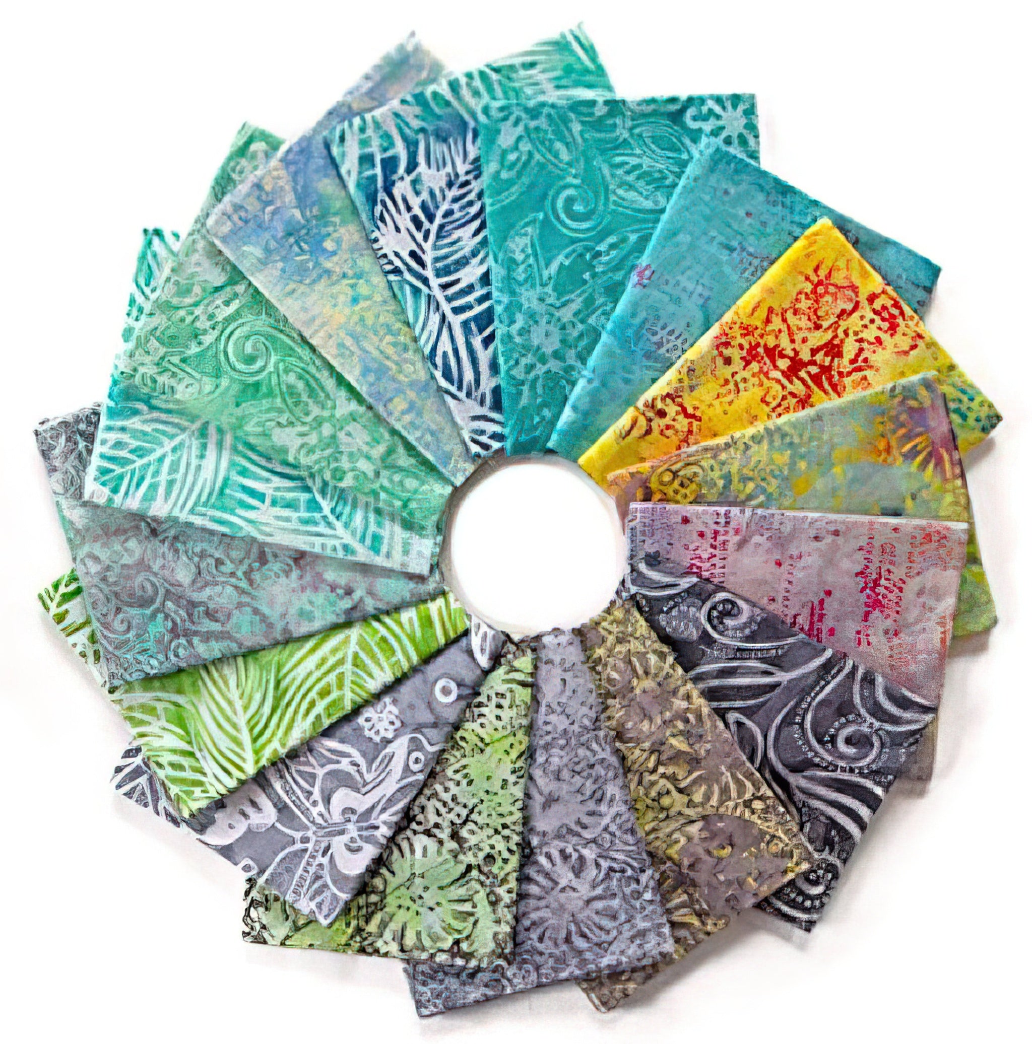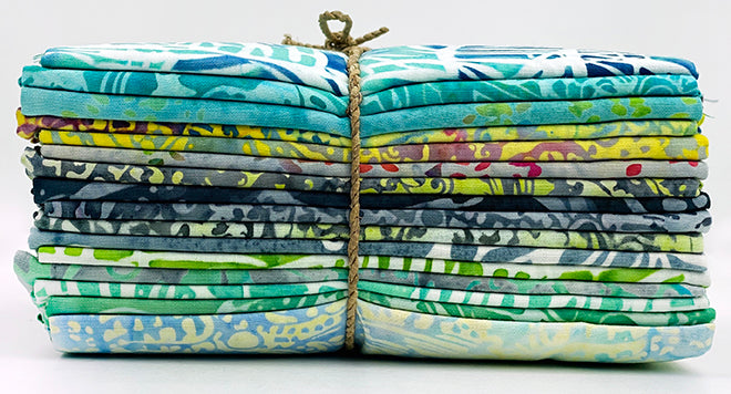 Northcott - Bayan Batiks: Flutter Turquoise and Aqua Green Fat Quarter Bundle.16 Pieces.
