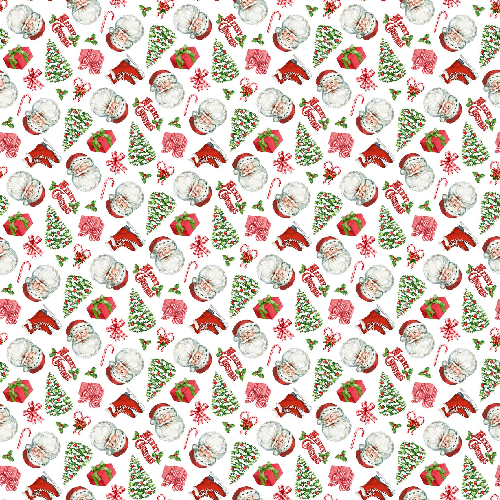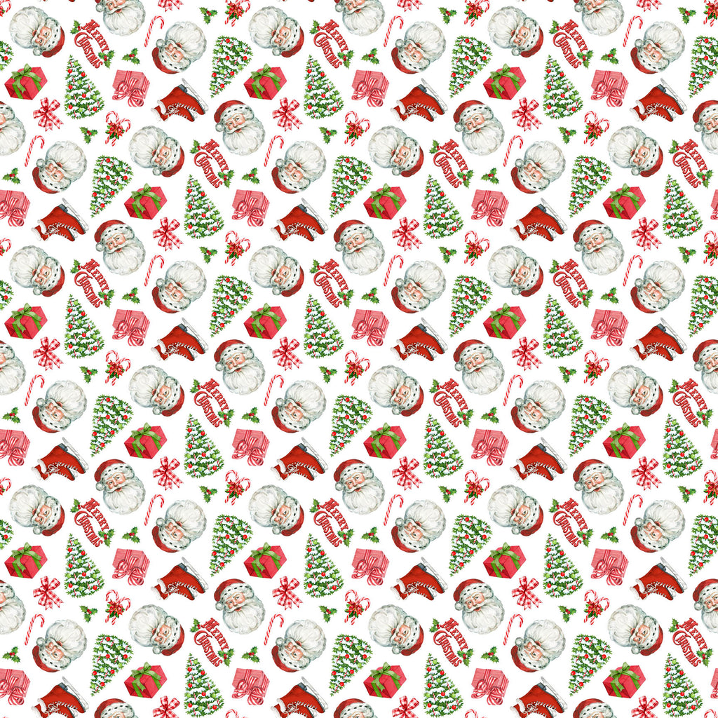 NORTHCOTT - Vintage Christmas by Deborah Edwards - Santa Toss - White Multi