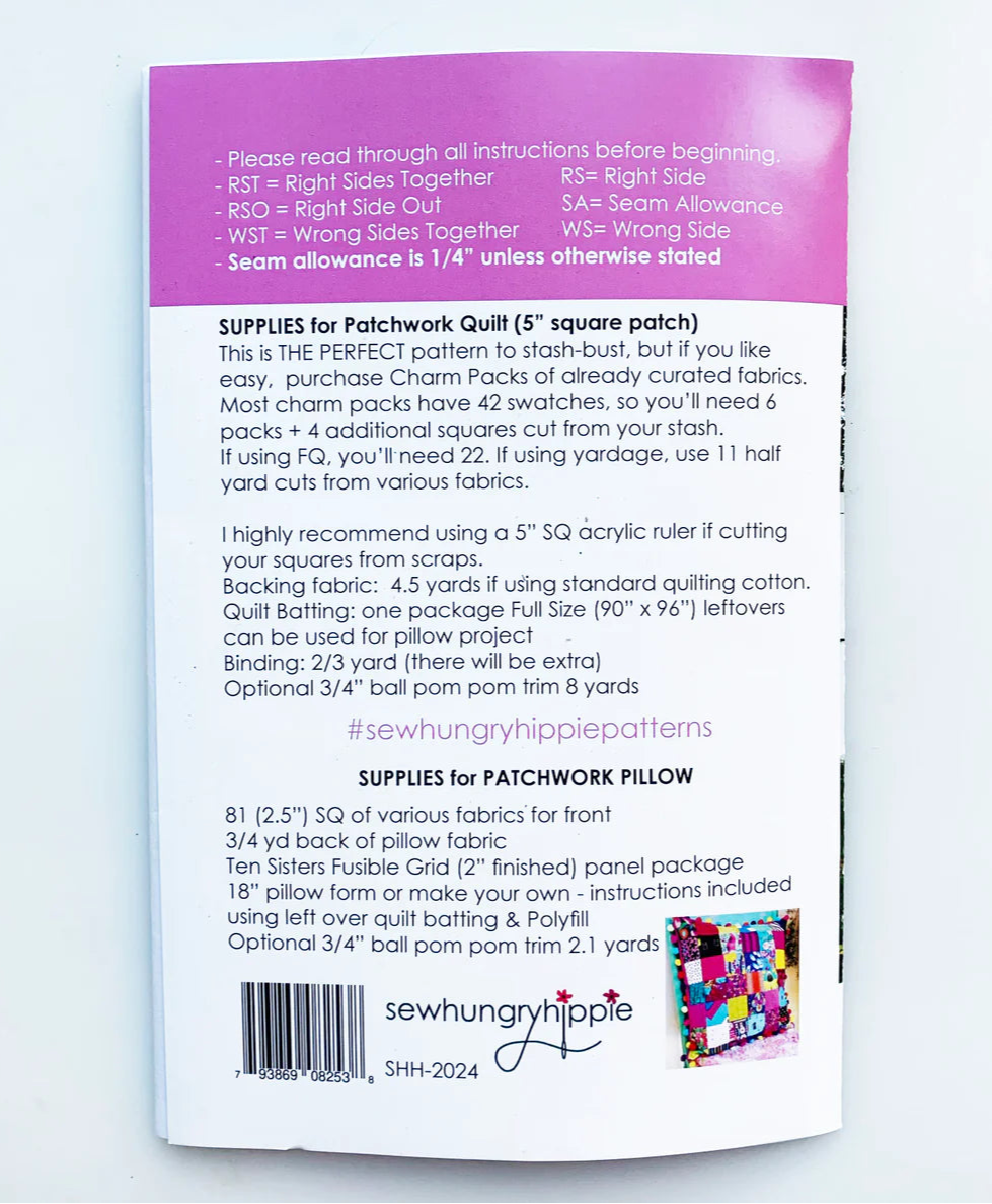 Patchwork Quilt and Pillow Pattern from Sew Hungry Hippie