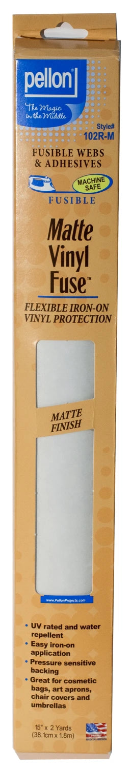 Pellon Vinyl Fuse Matte is an easy to use product that adds a clear protective matte finish to fabrics. It features a removable paper backing for easy measuring and a pressure sensitive side for easy application. Great for projects such as cosmetic bags, children’s toys, bibs and more! Acid-Free 100% Vinyl. 15in x 2yds. Clear protective matte finish. Features removable paper backing. Has a pressure sensitive side for easy application. Sewing machine safe. Water repellent and UV rated.