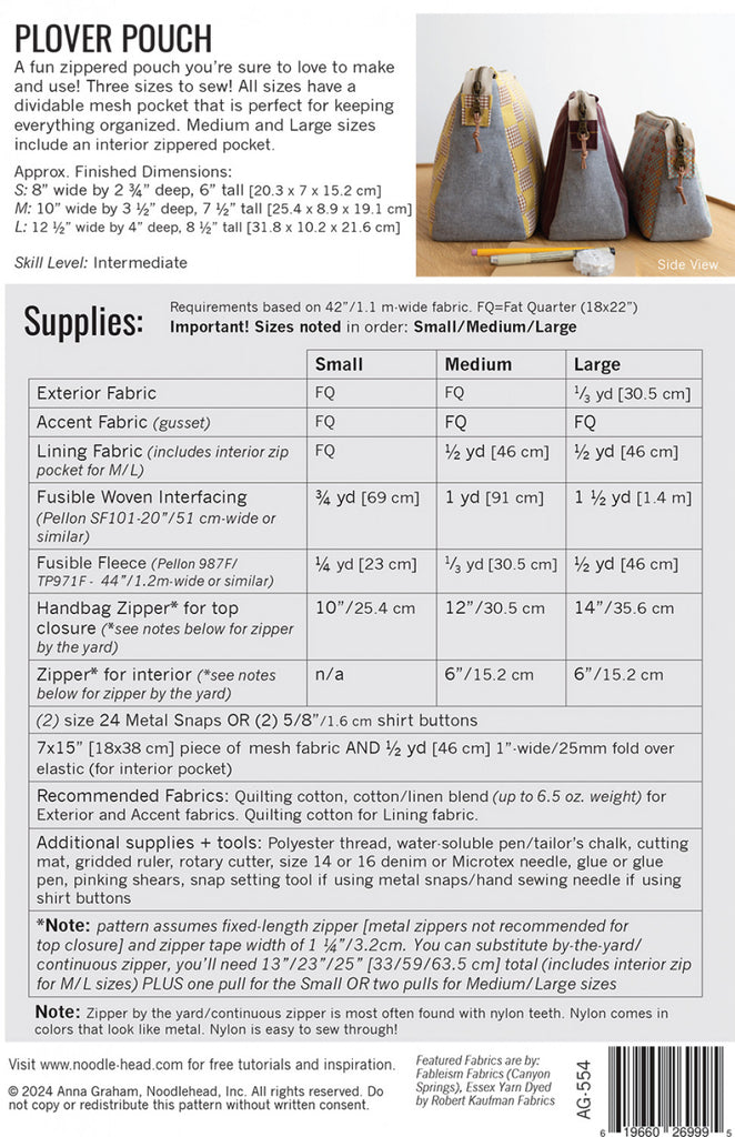 A fun zippered pouch you’re sure to love to make and use! Three sizes to sew! All sizes have a dividable mesh pocket that is perfect for keeping everything organized. Medium and Large sizes include an interior zippered pocket.