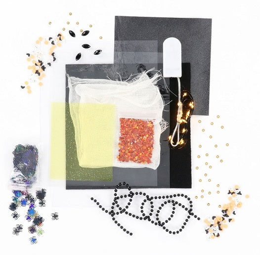 We’ve gathered all the bewitching details for your Pumpkins & Potions Ladder Quilt! Embellish your quilt with twinkly fairy lights, shimmery rhinestones, clear vinyl, and boo-tiful beads. Plus so much more! Made of: Various Media.