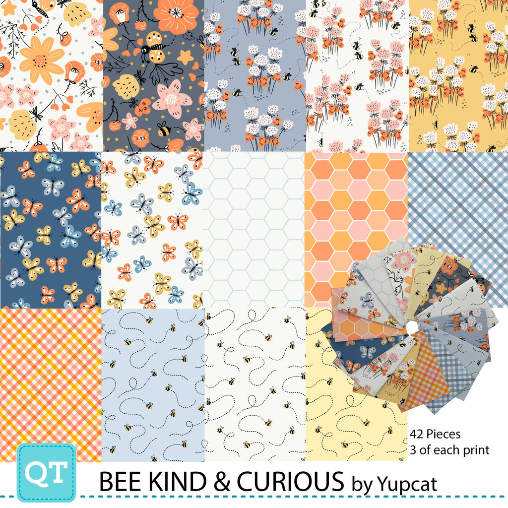 Bee Kind & Curious by Yupcat for QT Fabrics. 100% cotton quilting fabric. 44/45 inch wide.