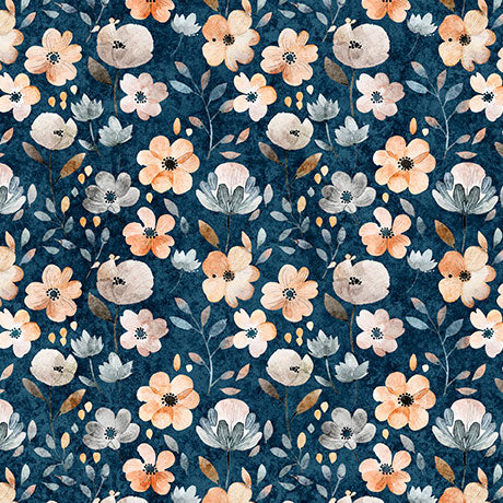 QUILTING TREASURES - QT Cuties 2 by Morris Creative Group - Floral - Denim