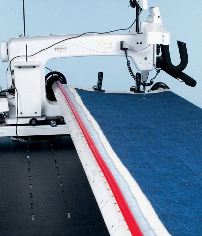 Experienced Longarm quilters know that using Red Snappers to attach the quilt top and backing to the frame quickly, accurately and easily makes longarm quilting a joy. Often loading the quilt on the frame is daunting if the quilter has to pin all the edges . Red Snappers eliminate the need to pin. You can quickly press the clamp over the rod, clamping on the edge of the quilt to hold it tight and secure. Red Snappers come with enough rods and clamps to attach to three poles. The sets are :8' frame = 95" of clamps These lengths will take into account the size of your leader and handlebars that limit you from quilting the entire length of the quilt frame. Choose the correct TABLE size, not the length of clamps.
