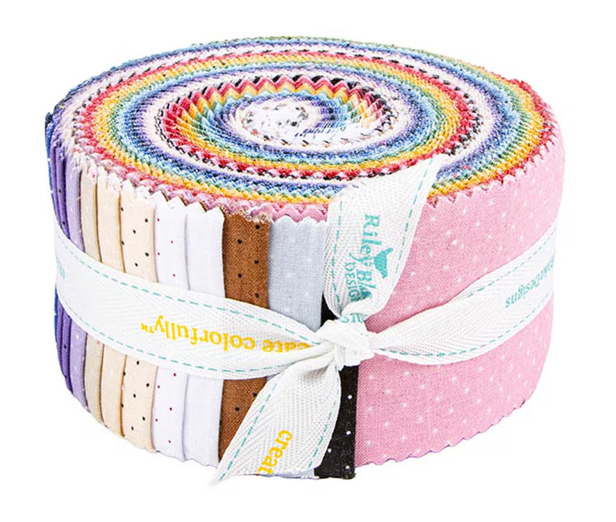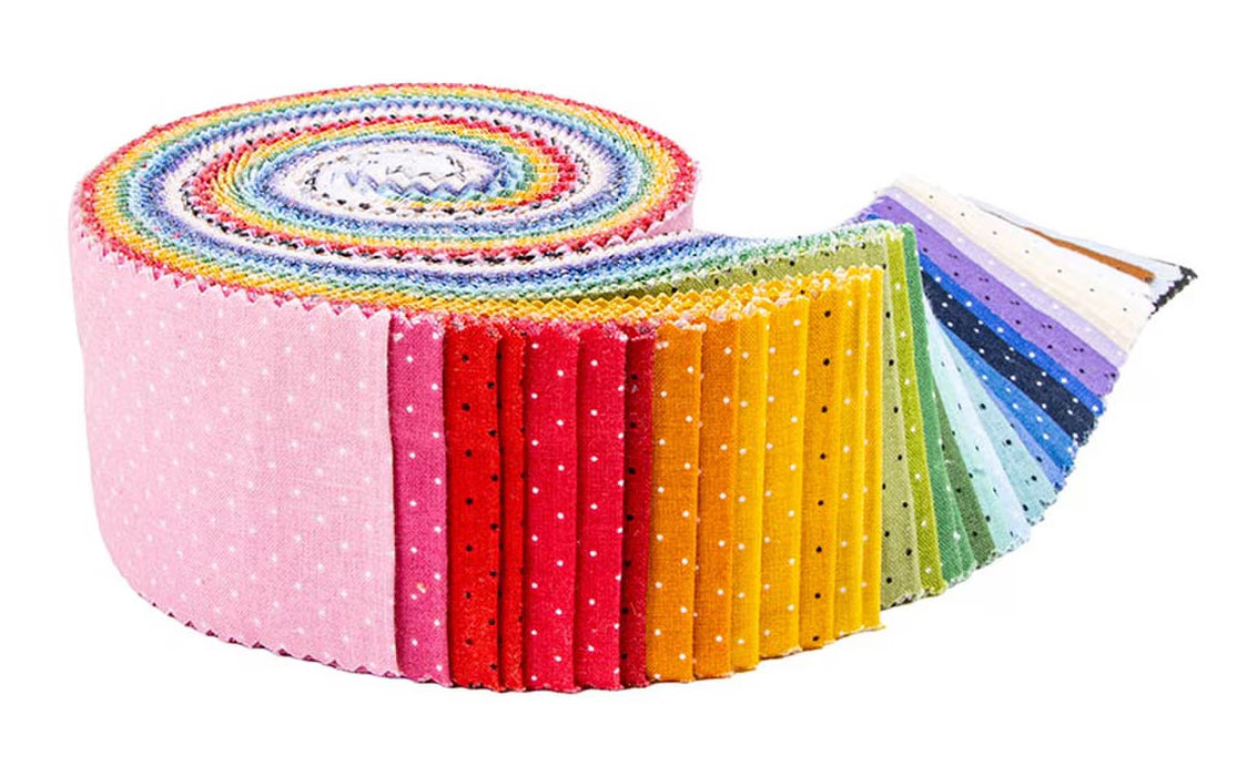 This 2.5" Rolie Polie includes 40 pieces from the American Jane Pindots collection by Sandy Klop of American Jane for Riley Blake Designs. Each print will be included 1-2 times