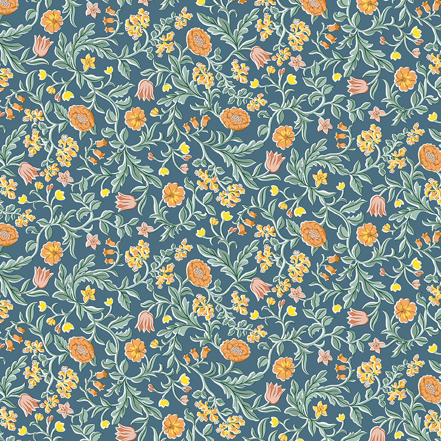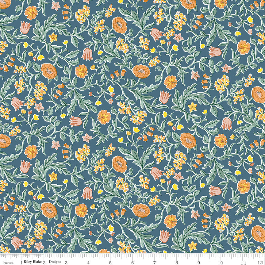 RILEY BLAKE - Craft Garden by Liberty Fabrics - May's Flowers - C - Denim